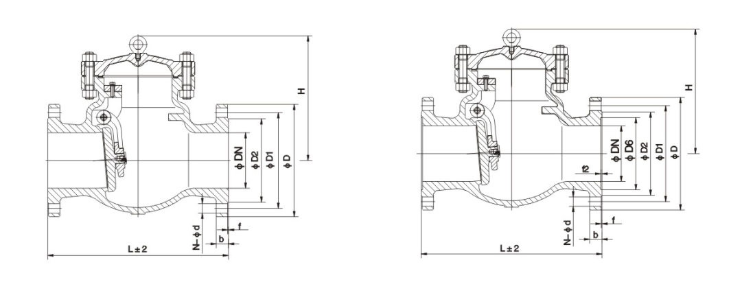 H44H、H44Y 型旋启式止回阀是靠管路中介质本身的流动产生的力而自动开启和关闭的,属于一种自动阀门。止回阀用于管路系统,其主要作用是防止介质倒流、防止泵及其驱动电机机反转,以及容器内介质的泄放。止回阀还可用于给其中的压力可能升至超过主系统压力的辅助系统提供补给的管路上。